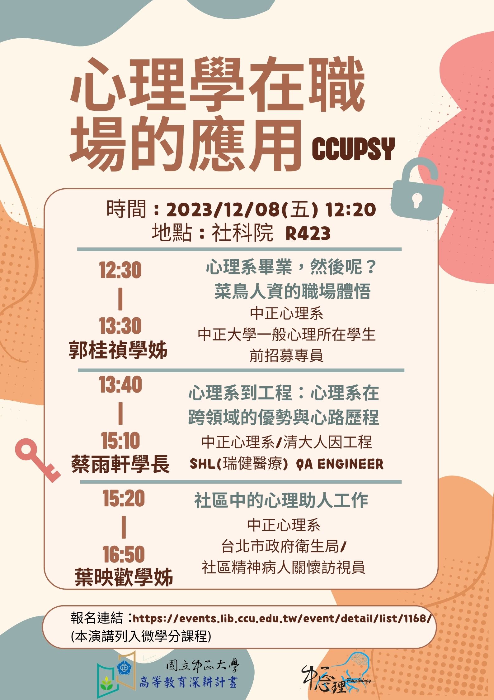 【心理系演講】12/08(五) 心理學在職場的應用